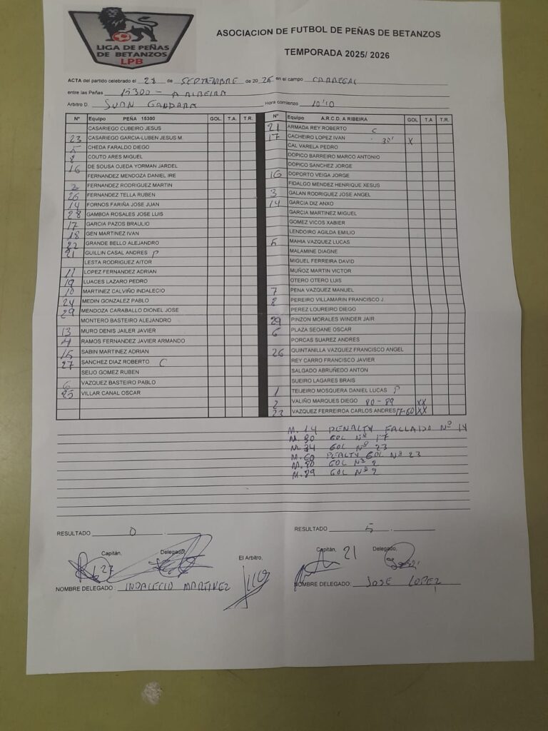 28 de septiembre de 2025 10:00 Liga de Peñas de Betanzos 2025-2026