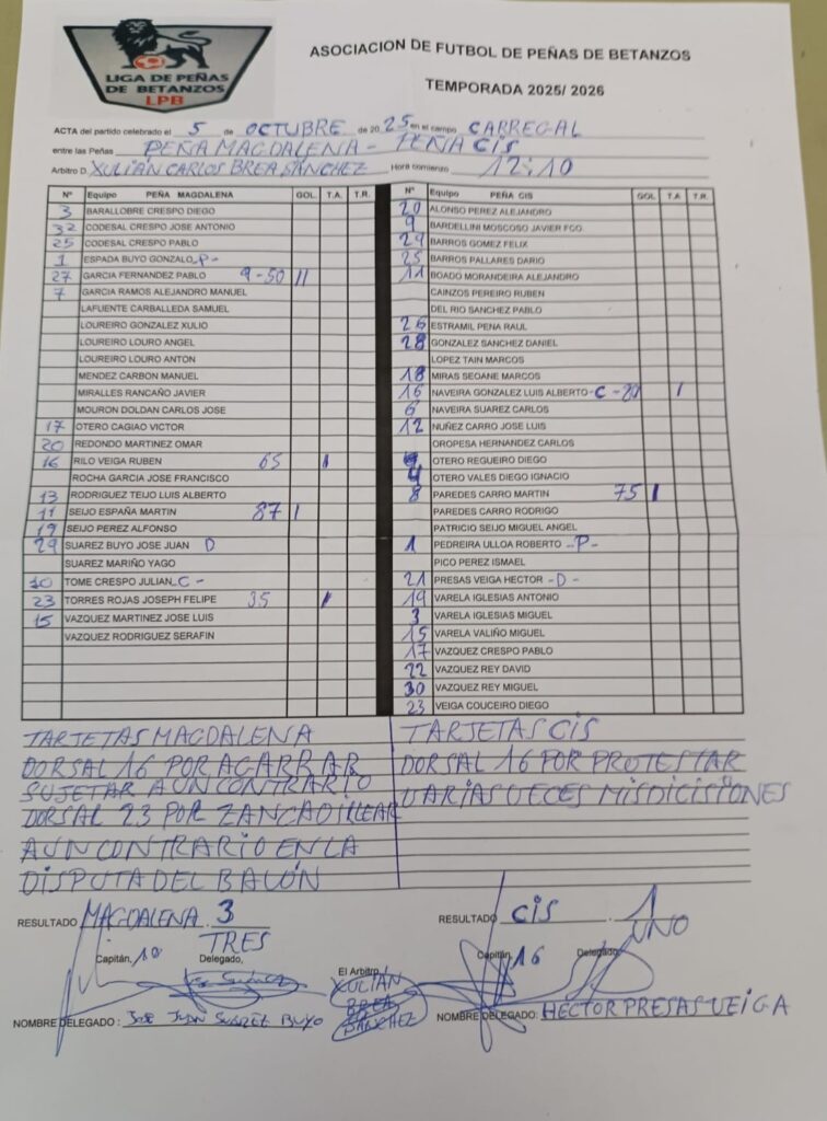 | 5 de octubre de 2025 | 12:00 | Liga de Peñas de Betanzos | 2025-2026 |