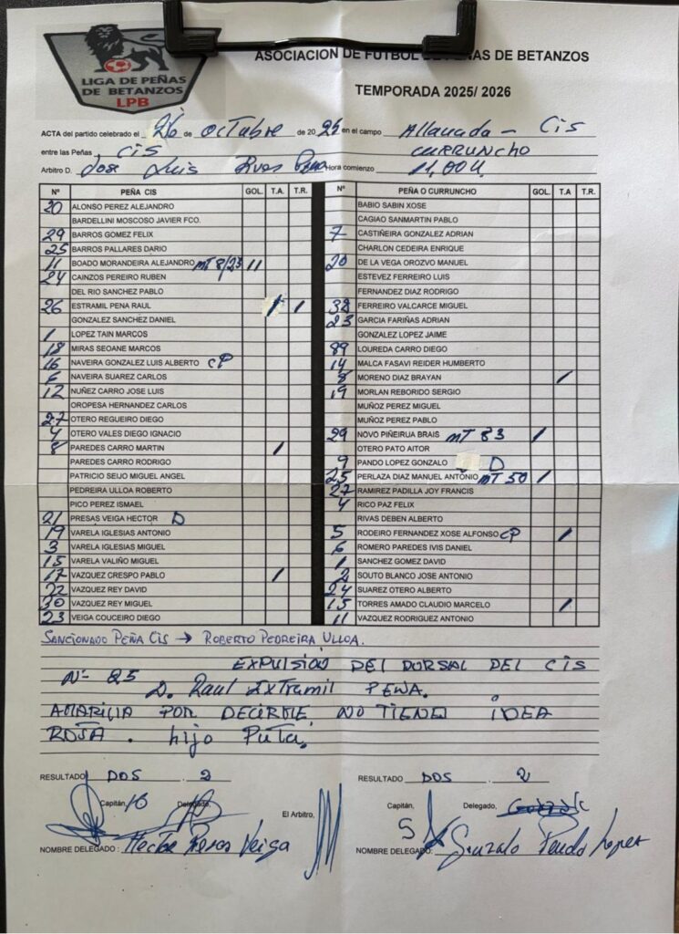 | 26 de octubre de 2025 | 11:00 | Liga de Peñas de Betanzos | 2025-2026 |