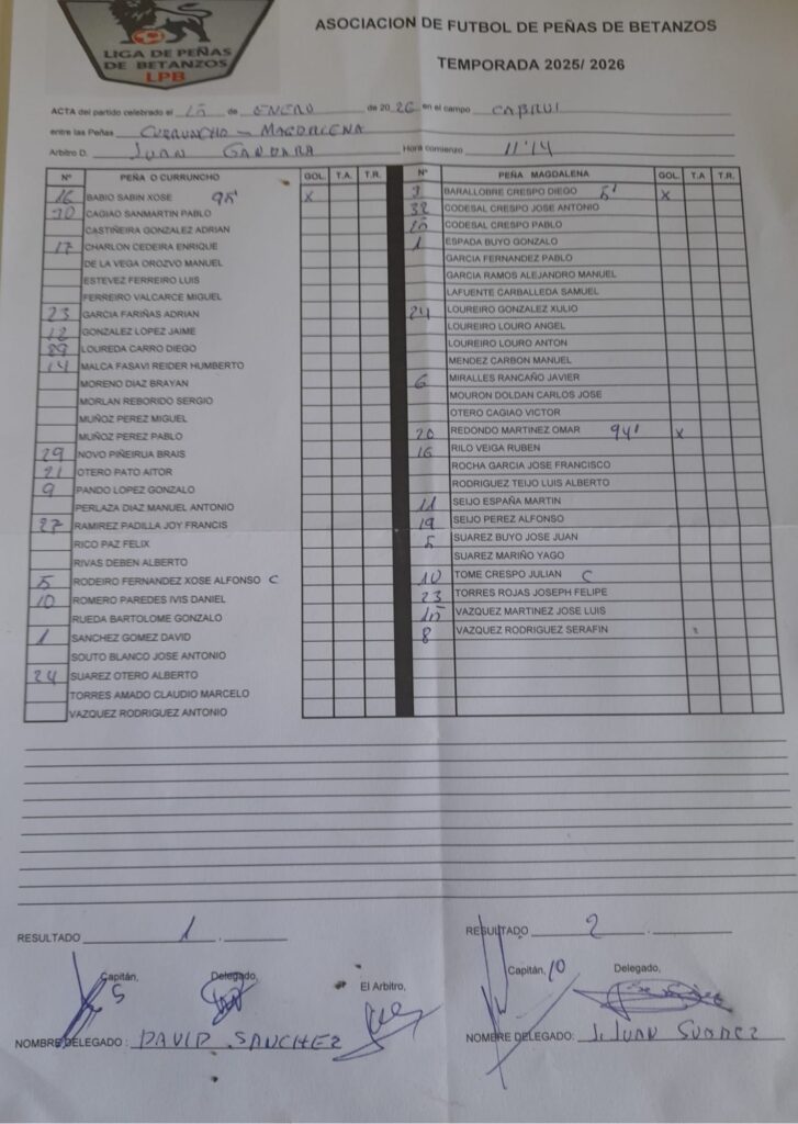 25 de enero de 2026 00:00 Liga de Peñas de Betanzos 2025-2026